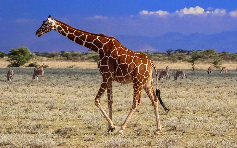 Reticulated giraffes historically occurred widely throughout Northeast Africa. Their favored habitats are acacia-dotted savannas, arid woodlands, seasonal floodplains, as well as semi-deserts, steppes and open forest. Today, they are most commonly found within Kenya, in parks such as Meru National Park, Samburu National Reserve, and generally around the northern side of Mount Kenya. Additionally, they have been observed as far as Habaswein, Mnazini and Wajir, as well as in Tsavo East National Park.